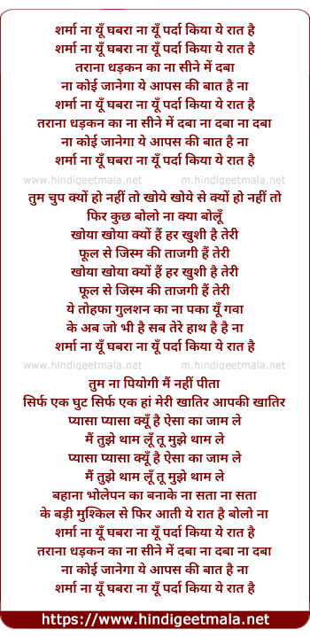 Lyrics of Sharma Na Yu Ghabara Na - शर्मा ना यूँ घबरा ना