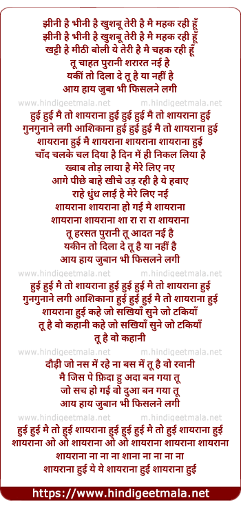 Lyrics of Hui Hui Mai To Shayarana Hui - हुई हुई मै तो शायराना हुई