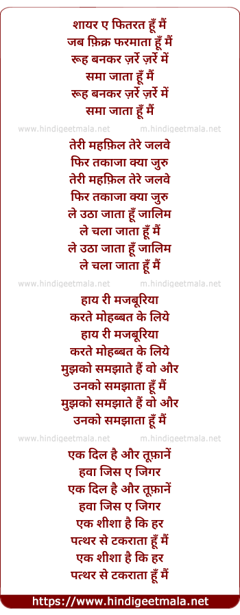 Lyrics of Shayer E Fitrat Hu - शायर ए फितरत हूँ मैं