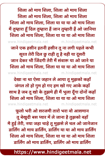 Lyrics of Sheela O My Sheela - शिला ओ माय शिला