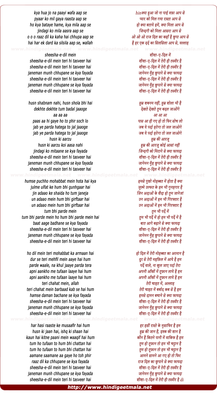 Lyrics of Sheesha-E-Dil Mein Teri Tasbeer Hai - शीशा-ए-दिल में तेरी ही तस्वीर है
