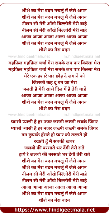 Lyrics of Sheeshe Ka Mera Badan - शीशे का मेरा बदन