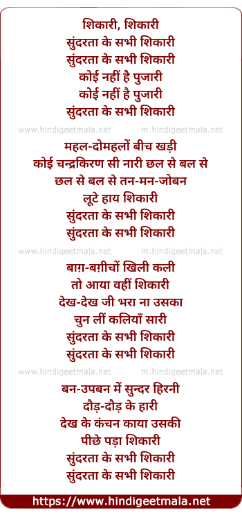 Lyrics of Shikaari, Sundrata Ke Sabhi Shikaari - शिकारी, सुन्दरता के सभी शिकारी