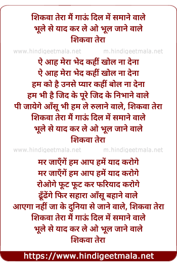 Lyrics of Shikavaa Teraa Main Gaaun - शिकवा तेरा मैं गाऊं