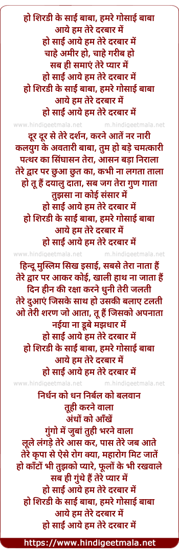 Lyrics of Shirdi Ke Sai Baba - शिरडी के साईं बाबा