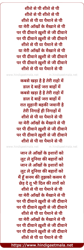 Lyrics of Shishe Se Pee Ya Paimane Se Pee - शीशे से पी या पैमाने से पी