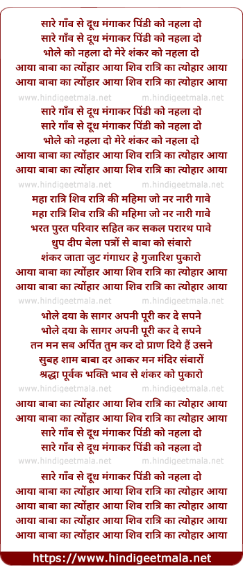 Lyrics of Shiv Ratri Ka Tyohar Aaya - शिव रात्रि का त्योहार आया