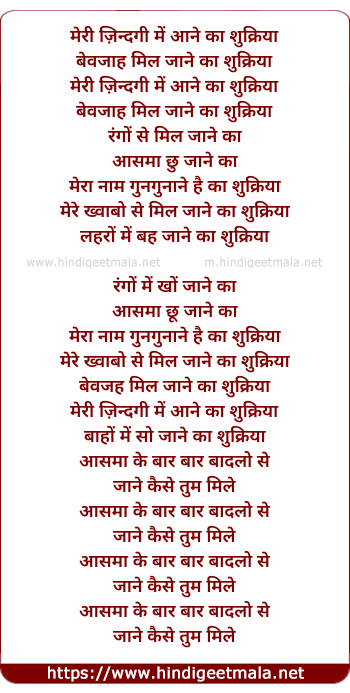 Lyrics of Shukriyaa - मेरी ज़िन्दगी में आने का शुक्रिया
