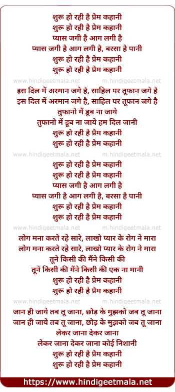 Lyrics of Shuru Ho Rahi Hai Prem Kahani - शुरू हो रही है प्रेम कहानी