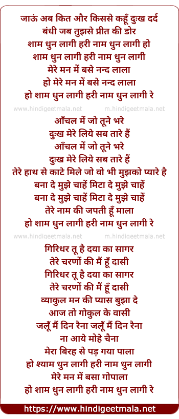 Lyrics of Shyam Dhun Lagi Hari Nam Dhun Lagi - शाम धुन लागी हरी नाम धुन लागी