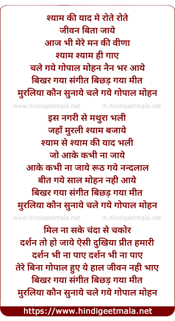 Lyrics of Shyam Ki Yaad Me Rote Rote - श्याम की याद मे रोते रोते
