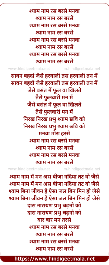 Lyrics of Shyam Naam Ras Barse - श्याम नाम रस बरसे