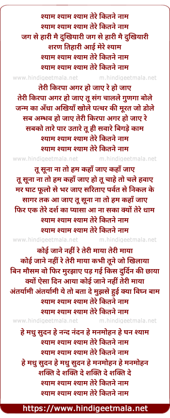 Lyrics of Shyam Tere Kitne Naam - श्याम तेरे कितने नाम