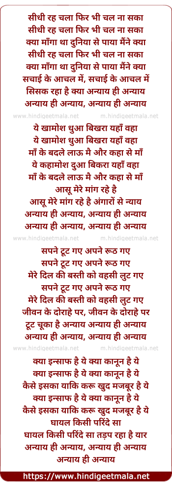 Lyrics of Sidhi Rah Chala Phir Bhi Chal Na Saka - सीधी रह चला फिर भी चल ना सका