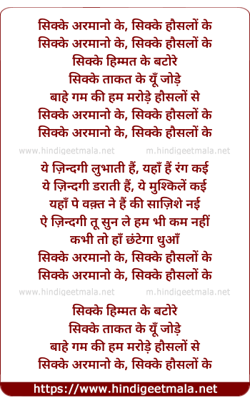 Lyrics of Sikkay Armano Ke - सिक्के अरमानो के