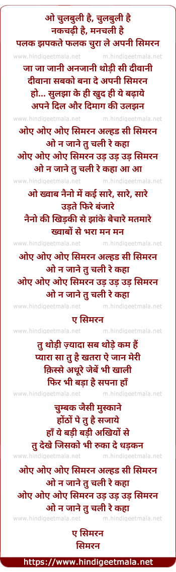 Lyrics of Simran - सिमरन