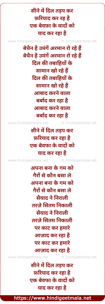 Lyrics of Sine Me Dil Tadap Kar - सीने में दिल तड़प कर