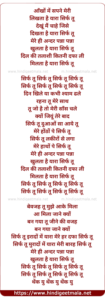 sirf tu, sirf tu, sirf tu, sirf tu.
