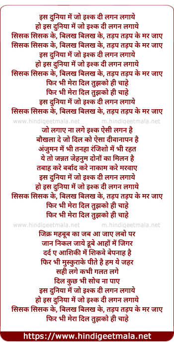 Lyrics of Sisak Sisak Ke (Remix) - इस दुनिया में जो इश्क दी लगन लगाये