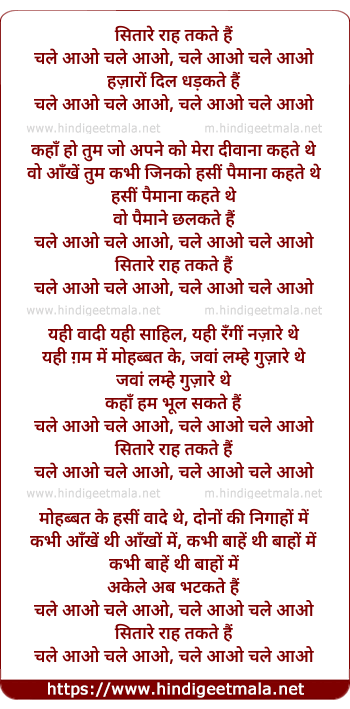 Lyrics of Sitaare Raah Takate Hain Chale Aao Chale Aao - सितारे राह तकते हैं चले आओ चले आओ