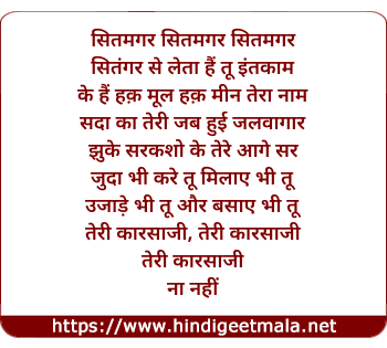 Lyrics of Sitmagar Se Leta Hai Tu Intaqam - सितमगर सितमगर सितमगर
