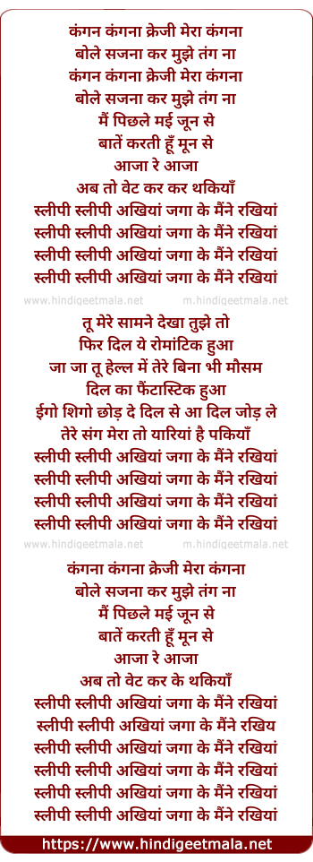 Lyrics of Sleepy Sleepy Akhiyan - स्लीप स्लीप अखियाँ
