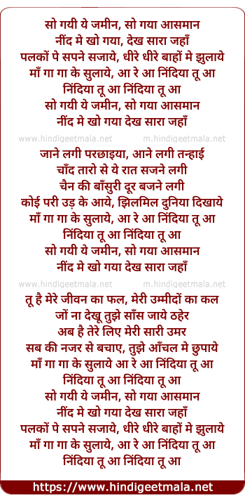 Lyrics of So Gayi Ye Zamin - सो गयी ये जमीन