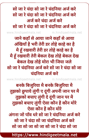 Lyrics of So Ja Re Chanda So Ja - सो जा रे चंदा सो जा