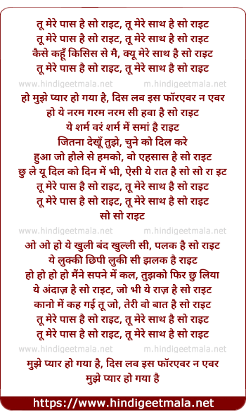 Lyrics of So Right, Tu Mere Pas Hai So Right - सो राइट, तू मेरे पास है सो राईट