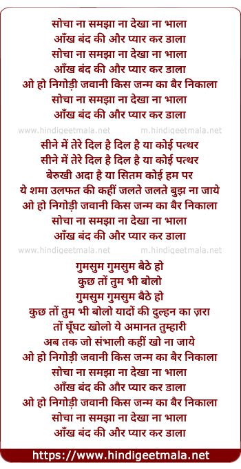 Lyrics of Socha Na Samjha - सोचा ना समझा