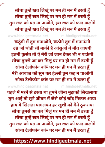Lyrics of Sochaa Tumhe Khat Likhun - सोचा तुम्हें खत लिखूं
