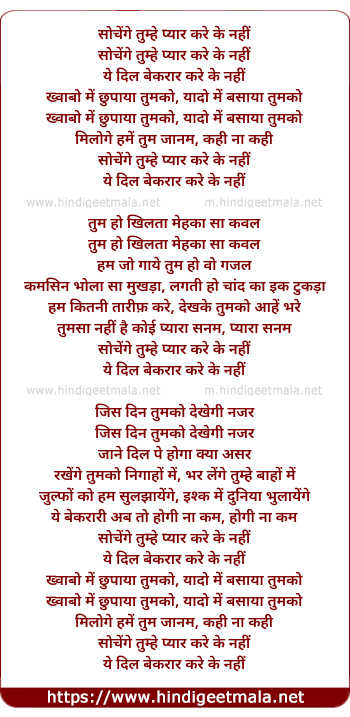 Lyrics of Sochenge Tumhe Pyar Kare Ke Nahi - सोचेंगे तुम्हे प्यार करे के नहीं