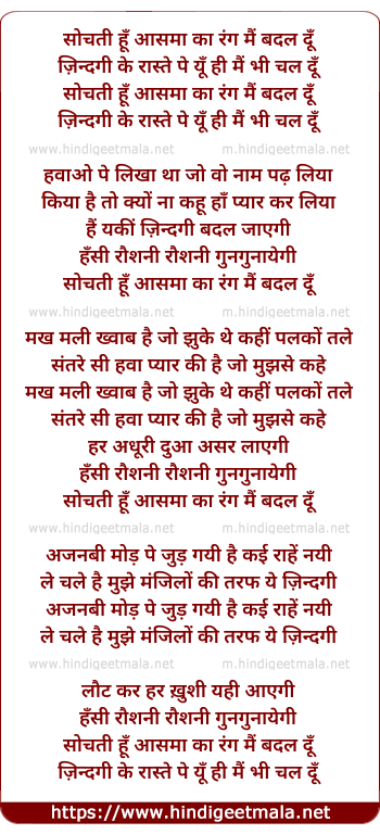 Lyrics of Sochti Hu - सोचती हूँ