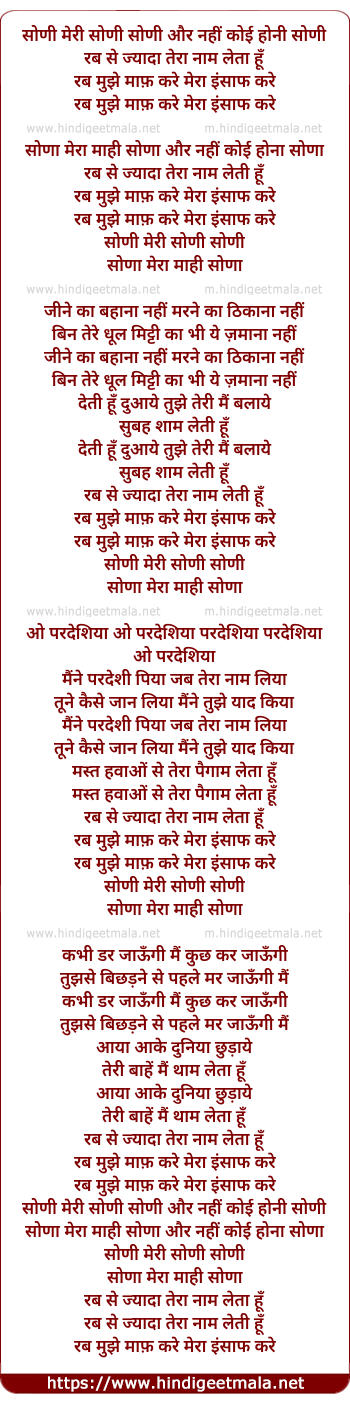 Lyrics of Sohni Meri Sohni, Rab Se Jyada Tera Nam Leta Hu - सोणी मेरी सोणी, रब से ज्यादा तेरा नाम लेता हूँ