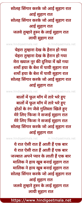 Lyrics of Solaah Singaar Karke Jo Aayi Suhaag Raat - सोलह सिंगार करके जो आई सुहाग रात