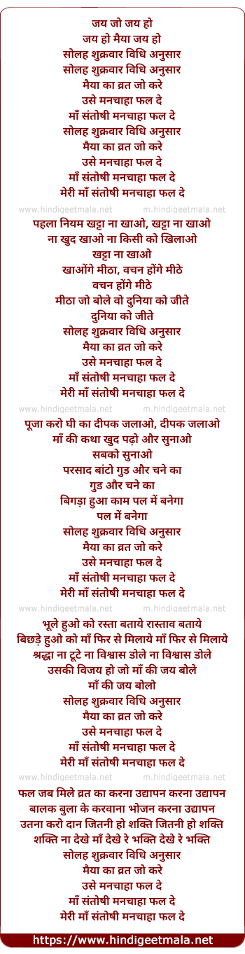 Lyrics of Solah Shukrawar Bidhi Anusar (Male) - सोलह शुक्रवार विधि अनुसार