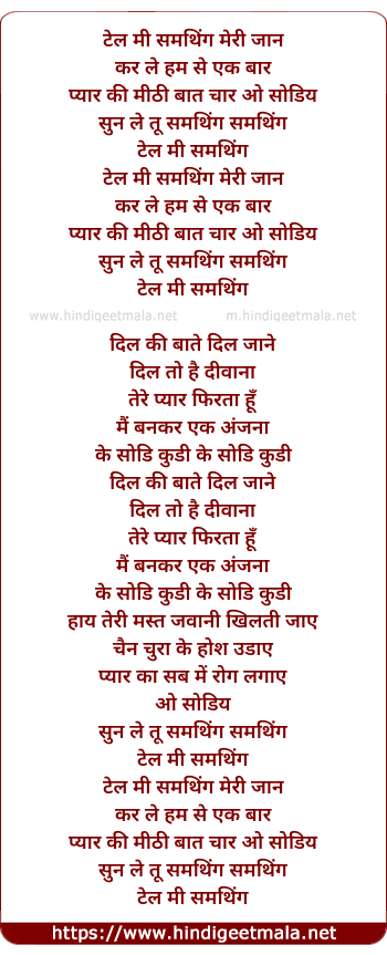 Lyrics of Something Something (Unplugged) - टेल मी समथिंग मेरी जान