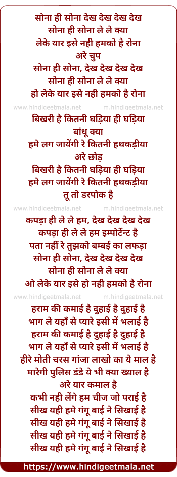 Lyrics of Sona Hi Sona Dekh Dekh - सोना ही सोना देख देख