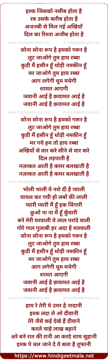 Lyrics of Sona Sona Roop Hai - सोना सोना रूप है