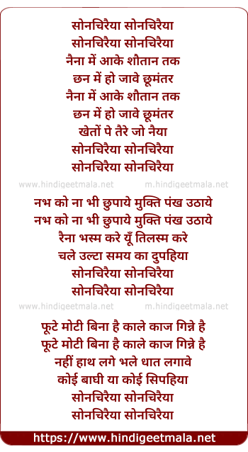 Lyrics of Sonchiraiyaa - सोनचिरैया