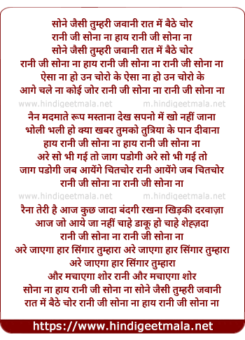 rat me baithe chor rani ji sona na haye rani ji sona na