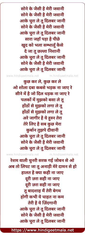Lyrics of Sone Ke Jaisi Hai Meri Javaani - सोने के जैसी है मेरी जवानी