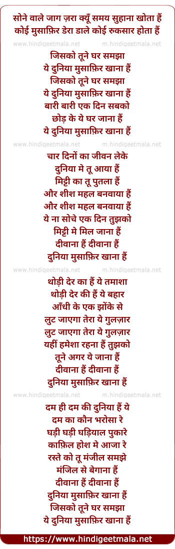 ye dunia musafir khana hai