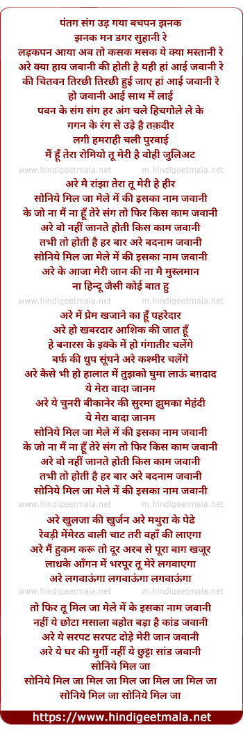 Lyrics of Soniye Mil Ja Mele Mein - सोनिये मिल जा मेले में