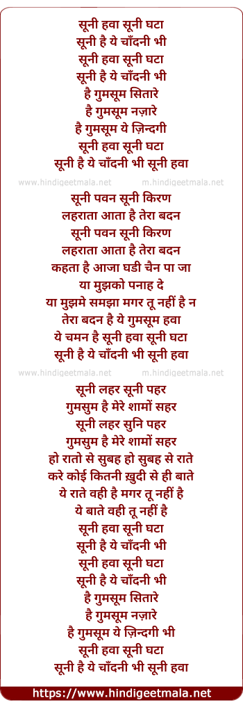 Lyrics of Sooni Hawa - सूनी हवा