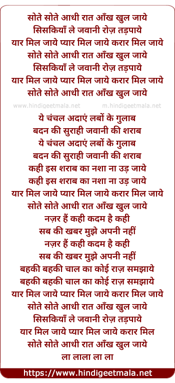 Lyrics of Sote Sote Aadhi Rat - सोते सोते आधी रात