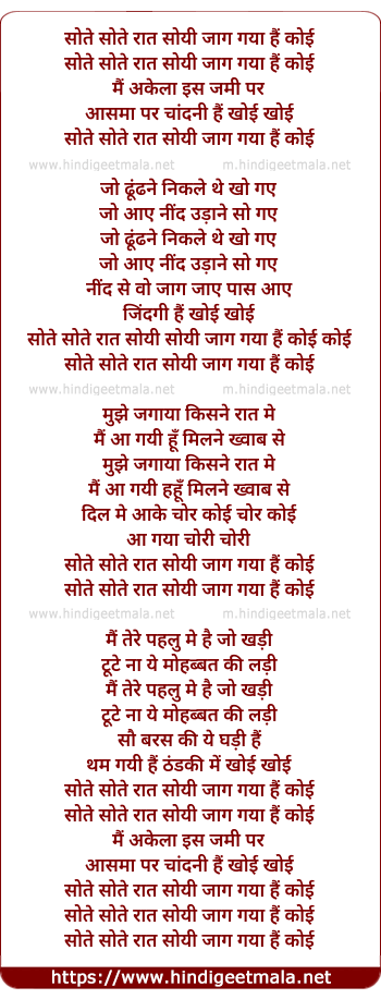 Lyrics of Sote Sote Raat Soyi - सोते सोते रात सोयी