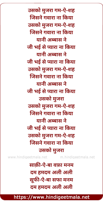 Lyrics of Soz O Salaam - उसको मुजरा गम-ऐ-शह