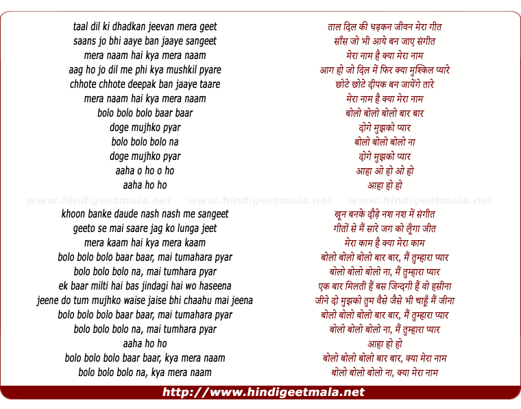 Lyrics of Star - ताल दिल की धड़कन जीवन मेरा गीत