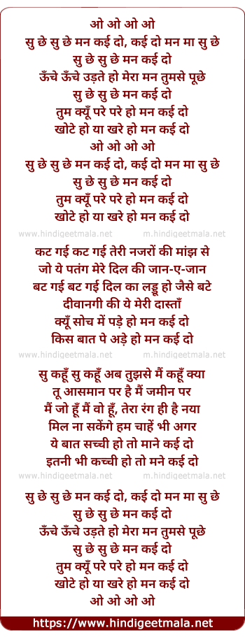 Lyrics of Su Chhe Su Chhe Man Kai Do - सु छे सु छे मन कई दो